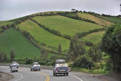 From Popayan we drive via Posta to the border close to Ipialu. The road is an on-going serpentine, right, left, right, spiced up with gravel and disappearing road parts and potholes of enormous sizes. Heavy Lorries and buses, mostly technical old-timers, create a constant line of cars behind them and we are waiting for the next chance to overtake without causing any accidents. But each time we passed such a line we have peace for a while.