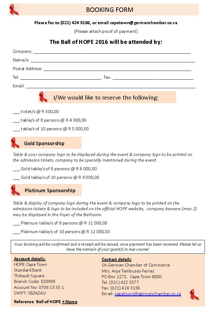 Ball of HOPE 2016 in Cape Town » Ball of Hope BOOKING FORM 2016